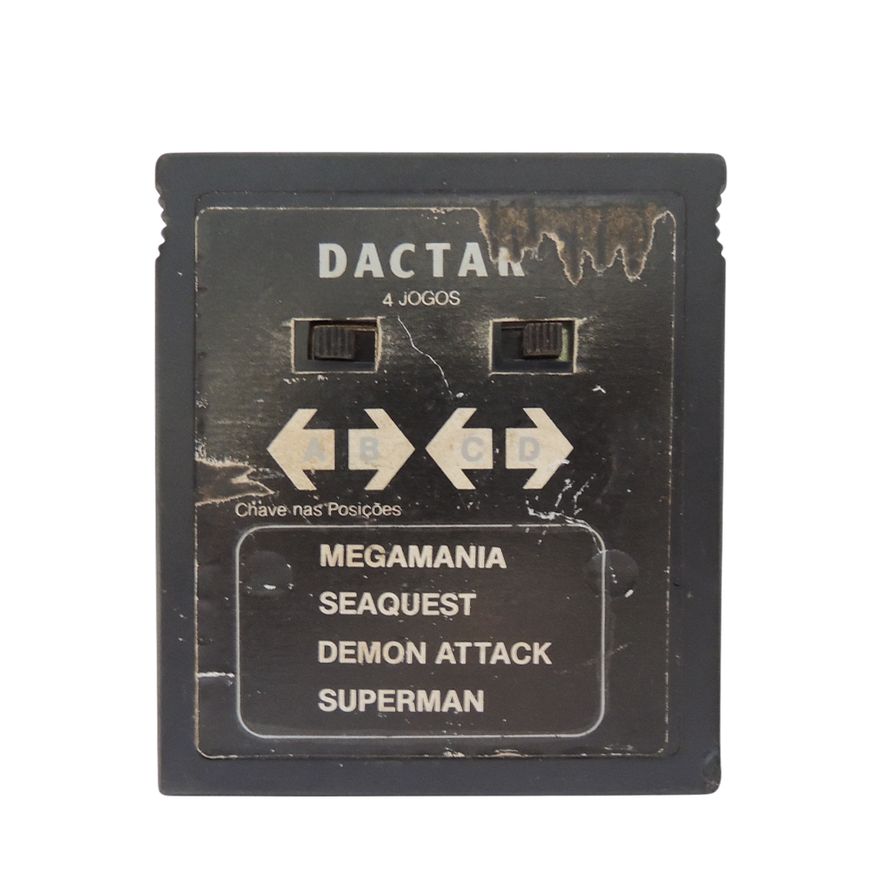 Dactar 4 em 1 é um cartucho especial para Atari que reúne quatro grandes clássicos da era dourada dos videogames: Megamania, Seaquest, Demon Attack e Superman. Produzido por uma fabricante alternativa muito conhecida no mercado brasileiro da década de 80 e 90, esse tipo de coletânea se tornou extremamente popular por oferecer múltiplas experiências em um único cartucho. Cada jogo apresenta uma proposta distinta, variando entre ação espacial intensa, exploração submarina estratégica e aventuras baseadas em personagens icônicos.