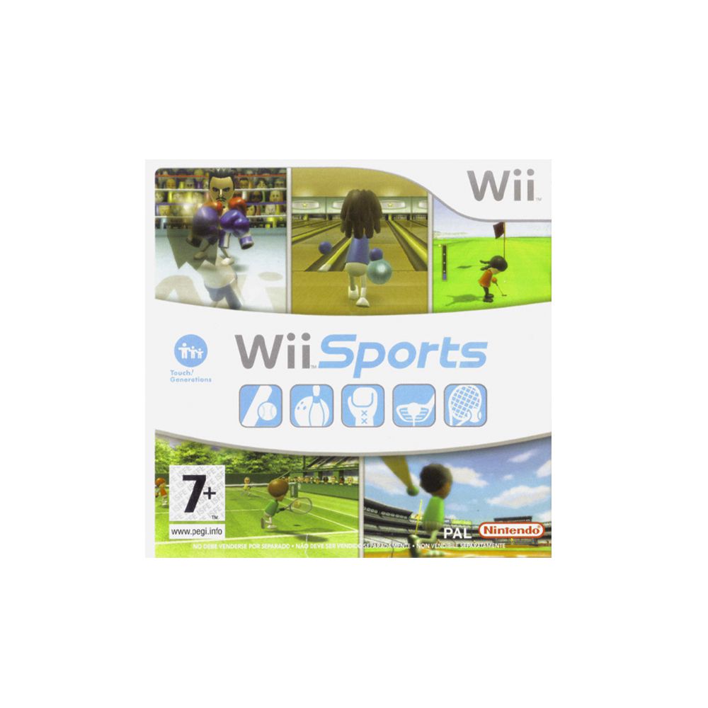 Diversão para amigos e família, o Wii Sports oferece cinco opções de jogo para entretenimento para 1-4 jogadores, sendo eles: tênis, beisebol, golfe, boxe e boliche. E para tudo isto, apenas o que é necessário é o controle remoto Wii e Nunchuk. Jogue com ou contra os amigos nestes variados modos de jogo com seus personagens Mii do Nintendo Wii.