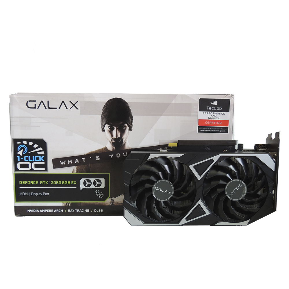 A Placa de Vídeo Galax GeForce RTX 3050 EX 1-Click OC 6GB GDDR6 é baseada na arquitetura NVIDIA Ampere, trazendo recursos modernos como Ray Tracing e DLSS para o segmento intermediário. Desenvolvida para oferecer excelente desempenho em jogos em Full HD, essa versão conta com overclock de fábrica ativável pelo recurso exclusivo 1-Click OC, garantindo performance adicional de forma prática e segura.