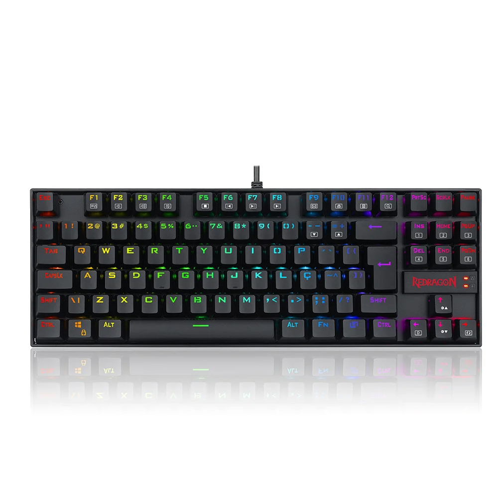 O teclado mecânico gamer Kumara da Redragon, traz todo poder dos teclados mecânicos para seu setup, com o sistema N-Key Rollover, para efeito Anti-Ghosting em todas as teclas, utiliza os renomados switches mecânicos Blue, além de trazer também o sistema Win-Key Lock que desabilita o botão Win, evitando que sua tela seja minimizada na hora de jogar.